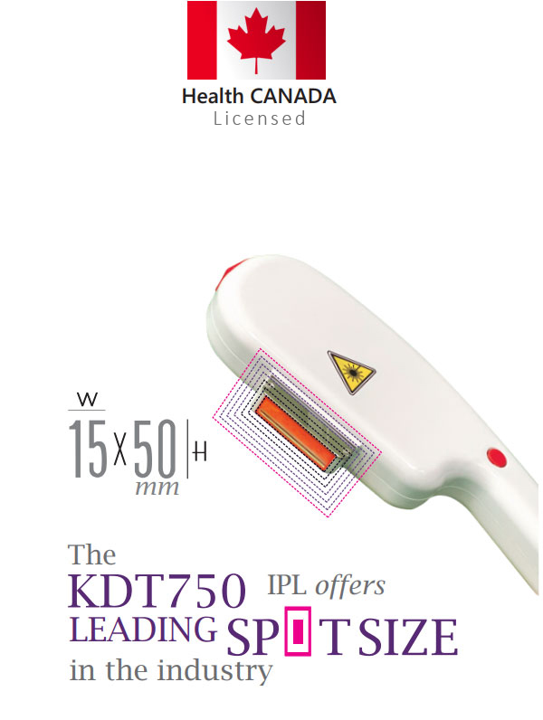 Offering effective, quick results with minimum discomfort, the KDT750 is a Hair Removal (HR) and Skin Rejuvenating (SR) that uses IPL to target dark hair follicles or dark pigment in the skin destroying it to remove hair or rejuvenate the skin.